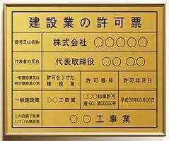 建設業許可取得後には、許可票(通称、「金看板」)を用意することが求められています。かもめ行政書士法人では、別費用を頂いていますが、 許可をサポートした方の許可票(看板)も対応しています。 色も18種類の中から選べます。