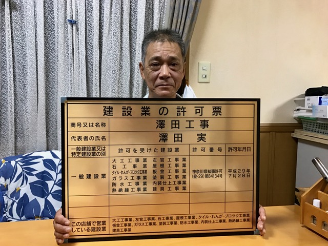澤田工事(神奈川県横浜市港南区)・神奈川県知事 第84134号